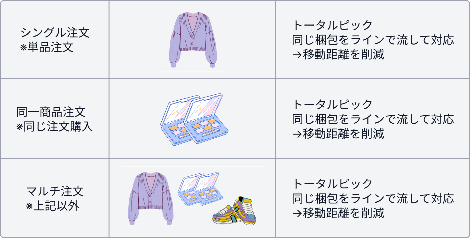 どのような物流案件もオーダーピックで行っていて、これがいいのかも分からない。