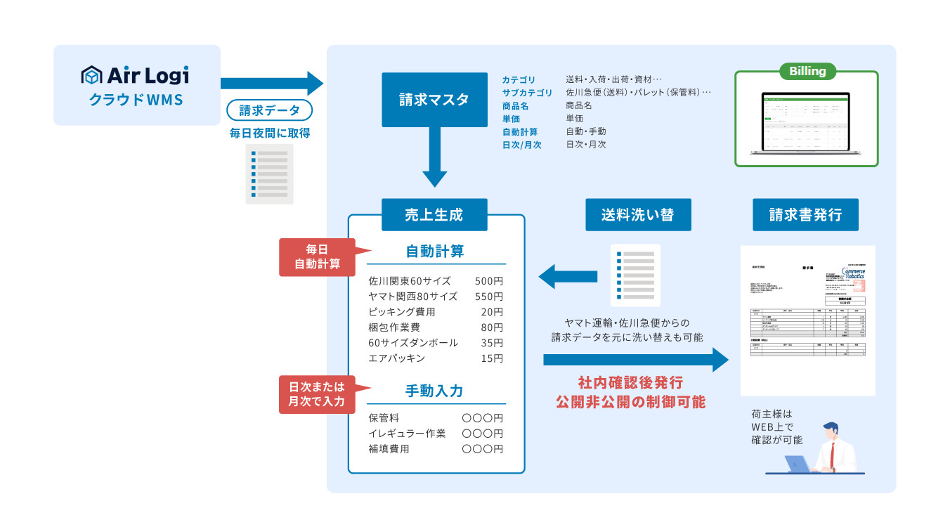 Billingは、複雑で面倒な3PL業務の請求を自動化を実現します。